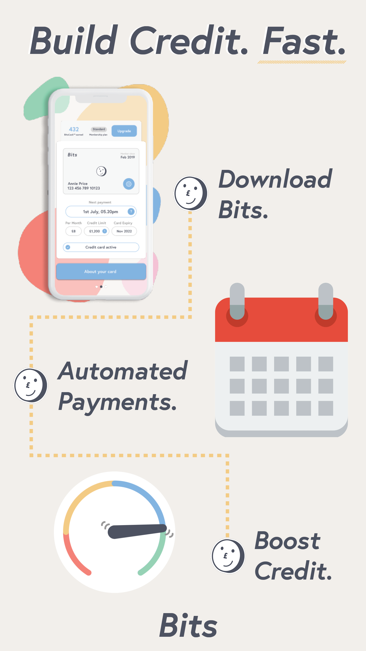 Bits is a financial service subscription based in the UK that allows its customers to rapidly build and improve their credit, while making guidance and education accessible.